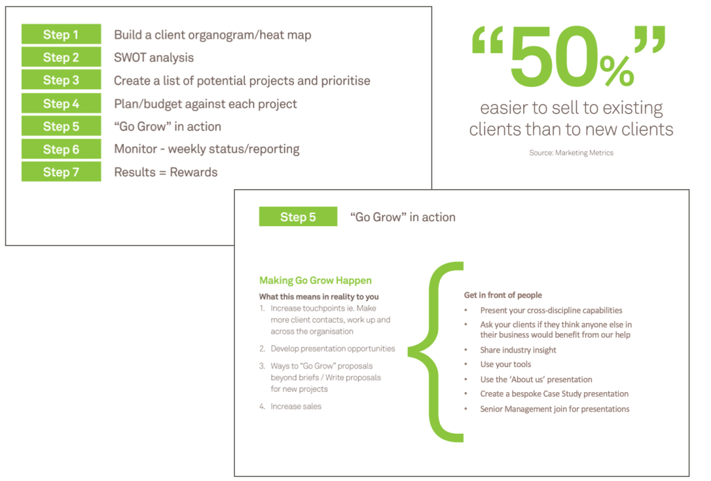 Maximise the growth of your existing client business using my own tried and tested business development process “Go Grow”